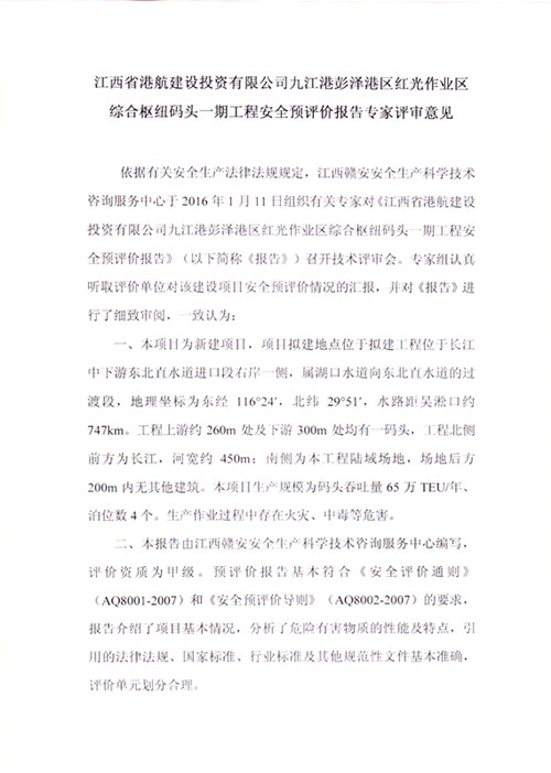 江西省港航建設(shè)投資有限公司九江港彭澤港區(qū)紅光作業(yè)區(qū)綜合樞紐碼頭一期工程